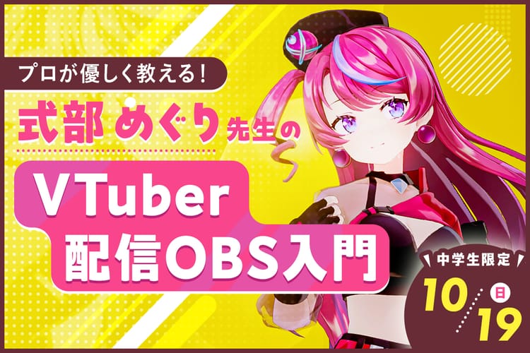 はじめてでも安心!式部めぐり先生が、Vtuber配信に最も使われているソフト「OBS」の基本をやさしくレクチャーします。キャラクターを画面に映したり、配信画面をつくったりしながら、Vtuberになるには欠かせないスキルを楽しく学べる授業です!